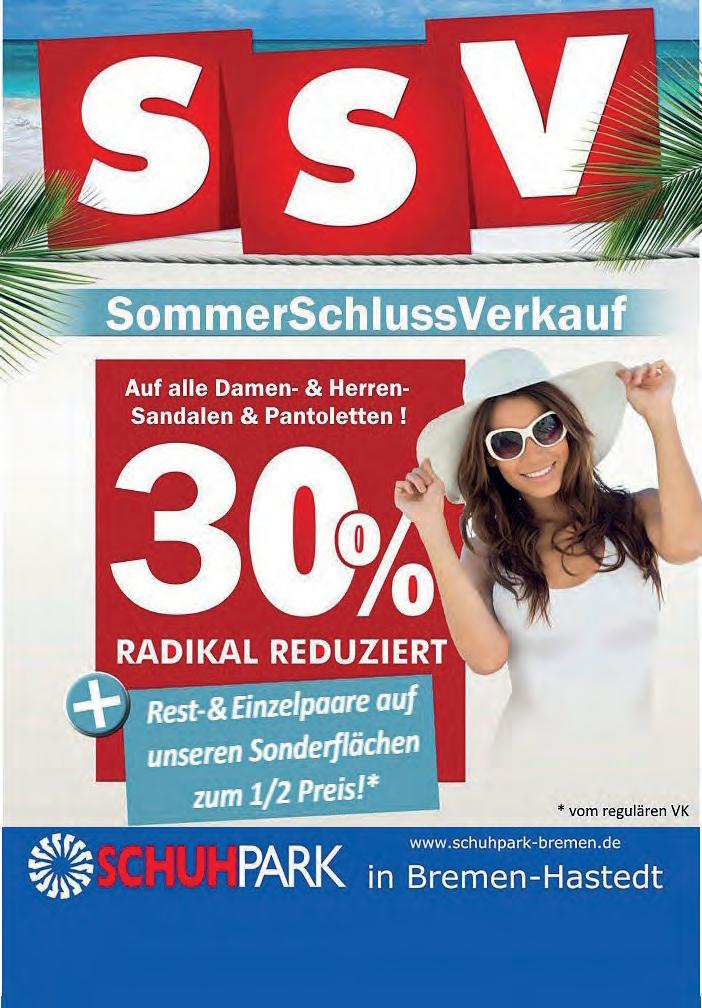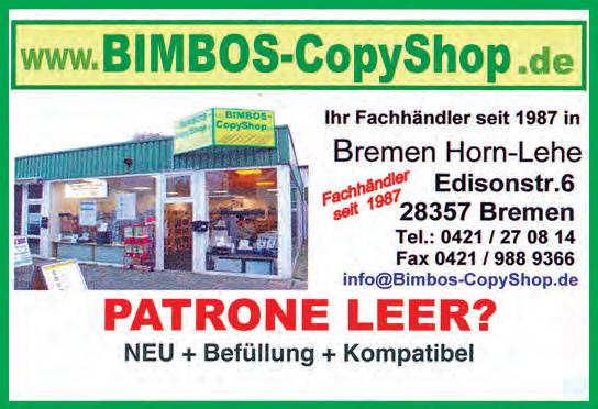 Kleinanzeigen: Tel. 690 55 400, Fax 690 55 500 Gestaltete Anzeigen: Tel. 690 55 102 info@weserreport.de Zurzeit gelten Anzeigenpreisliste Nr. 51 vom 1. Januar 2024 und unsere darin abgedruckten AGB. Falls Sie dieses Produkt nicht mehr erhalten möchten, bitten wir Sie, einen Werbeverbotsaufkleber mit dem Zusatzhinweis „Keine kostewnlosen Zeitungen“ an Ihrem Briefkasten anzubringen. Weitere Informationen finden Sie auf dem Verbraucherportal www.werbung-im-briefkasten.de Internet: www.weserreport.de