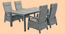 Aluminiumgestell mit Polyrattan dunkelgrau, bestehend aus 2 Loungesesseln, eine 2-sitzer Loungebank, 1 Loungetisch 130x75cm und 1 Loungehocker, inkl. Sitz- und Rückenkissen, Maße der Sitzecke: 250 x 210 cm 1.999,NUR 1.099,- GARTENMÖBELSET CORIDO 9-TEILIG bestehend aus 4 Polyrattan-Gartensesseln Corido sowie 4 Sitz- und Rückenkissen und 1 Alu-Gartentisch 180 x 100 cm mit extrem robuster Keramikplatte 2.715,NUR 1.499,GARTENMÖBELSET KERAMO MIT AUSZIEHTISCH bestehend aus 6 Verstell-Geflechtsesseln Keramo mit Gasdruckfedersystem inkl. Sitz- und Rückenkissen und 1 Alu-Ausziehtisch Keramo mit Keramikplatte 200/260 x 100 cm