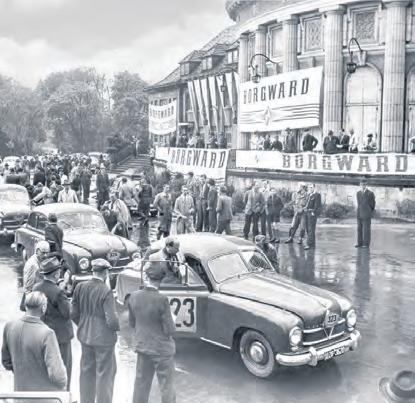 ◂ Die Nordseite des Parkhotels am Hollersee 2023. Deutschlandfahrt 1953: Halt am Zwischenziel Parkhaus. Deutlich erkennt man das im Stil des Neobarocks 1912 errichtete Gebäude, welches 1954 wieder zum Leben erweckt wurde. ▾