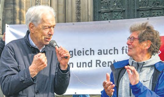 „Es ist das erste Mal, dass ich hier wieder eine Rede halte“: Bremens Alt-Bürgermeister Henning Scherf begrüßte etwa 250 Demonstrierende vor der Domtreppe. Er sprach mit Blick auf „sein“ Rathaus. Beim Tag der älteren Generation setzte er sich für Gerechtigkeit gegenüber Älteren ein.