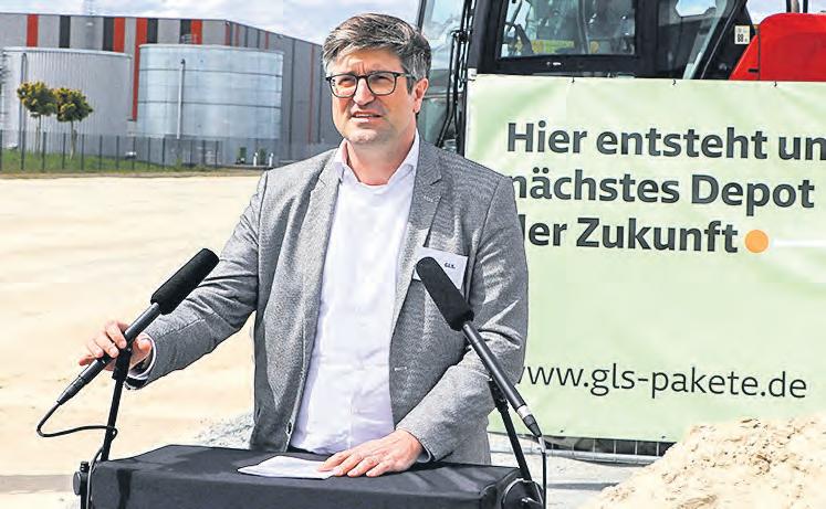 Welche Bedeutung GLS dem Bauvorhaben beimisst, belegt schon, dass der GLS-Geschäftsführer Moritz Eichhöfer zur Spatenstich-Feier eigens aus Frankfurt angereist war. „Das wir heute hier stehen, ist das Ergebnis einer Reise, eines Kraftaktes. Für uns stand schon sehr
