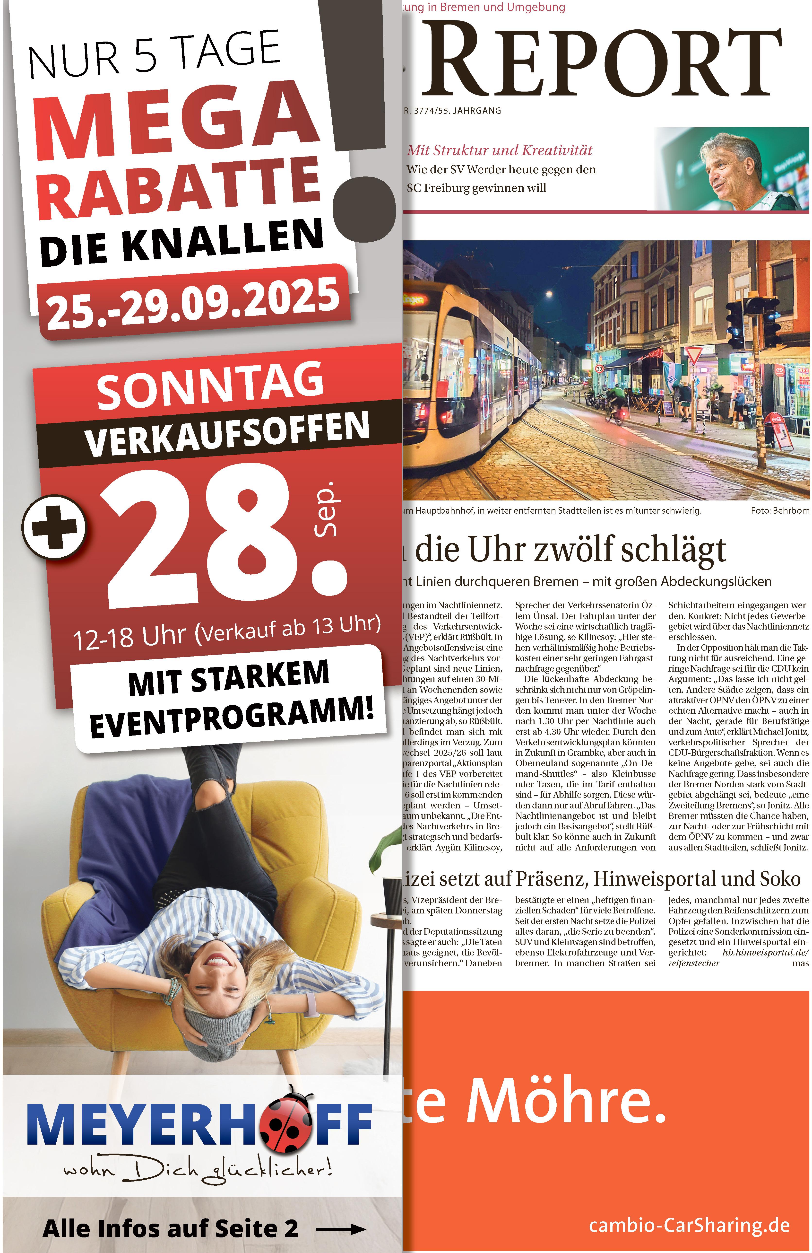 Keine Zeitung erhalten? Meldung bitte über www.weserreport.de/ewz