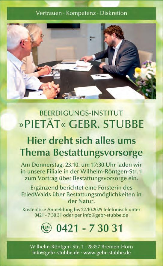 Kleinanzeigen: Tel. 690 55 400, Fax 690 55 500 Gestaltete Anzeigen: Tel. 690 55 102 info@weserreport.de