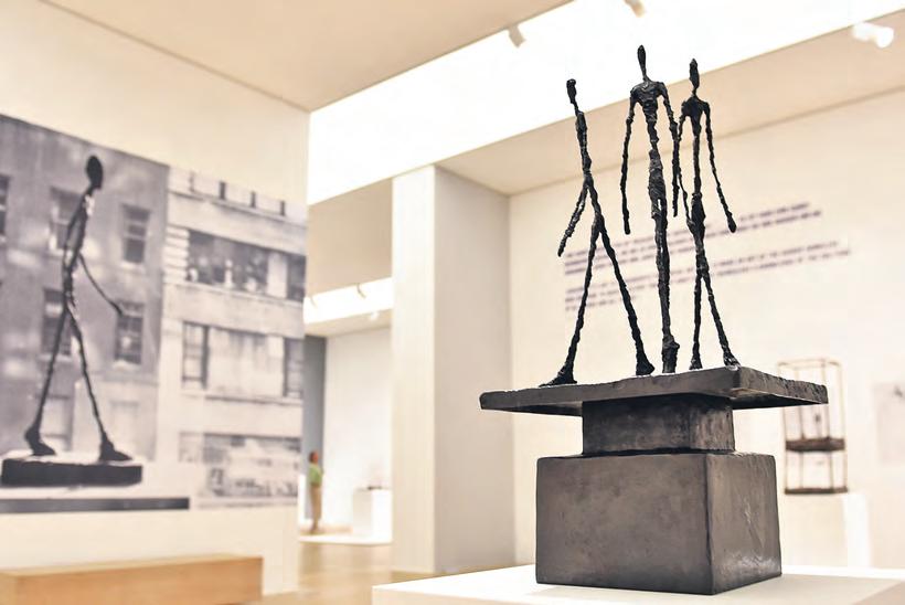 ren aber auch mit seinen Erinnerungen an hoch aufragende Nadelbäume in seiner Schweizer Heimat. So, wie Giacometti Bäume als Frauen wahrnahm, so sah er auch Berge wie Menschen an. Folglich sind die zerfurchten Oberflächen seiner Plastiken nicht nur Ergebnisse seines rastlos suchenden Formungsprozesses. Sie erinnern auch an die Strukturen der Berge und schaffen Analogien zwischen Natur und Mensch.