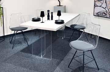 Esstisch mit Platte aus Sicherheitsglas anthrazit und Gestell in schwarz matt lackiert, ca. 180x75x95 cm. Online-Shop: 01860118 / Stuhl in verschiedenen Farben mit Kufengestell in schwarz matt. Online-Shop: 0186011801