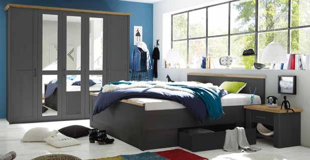 Garderobe in Coast Evoke Eiche Nachbildung, Absetzung in Kosmos Grau, ca. 281x200x45 cm. Online-Shop: 05660121 / 1 Garderobenschrank, 1-trg., rechts, ca. 60x200x45 cm / statt 431,-* jetzt 199,- / 2 Garderobenpaneel mit Hutablage, ca. 100x117x29 cm / statt 222,-* jetzt 99,- / 3 Sitzbank mit 2 Türen, inklusive Sitzkissen in Bezug anthrazit, ca. 101x54x45 cm / statt 371,-* jetzt 179,/ 4 Kommode, 2-trg., 2 Schubladen, ca. 101x116x45 cm / statt 491,-* jetzt 239,- / 5 Spiegel ca. 100x68 cm / statt 148,-* jetzt 79,-