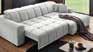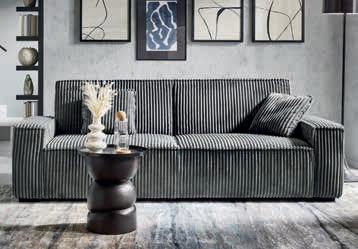 Schlafsofa in Cord Velo dark grey. Polsterung mit Taschenfederkern. LF: 140x200 cm, ca. 241x88x95 cm. Online-Shop: 02450007