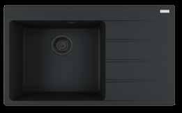Modernes und zeitloses Design mit auslaufenden Entwässerungsrillen auf der Abtropffläche. Black Collection mit farblich abgestimmtem Drehknopfventil, Überlauf und Ablauf zum Becken in Black Matt.