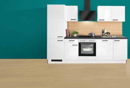 Küchenzeile Hochglanz magnolia/Eiche-Nachbildung astig, inkl. Elektrogeräte, Einbauspüle und Armatur, ca. 319 cm breit. Onlineshop 0092001997