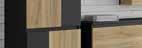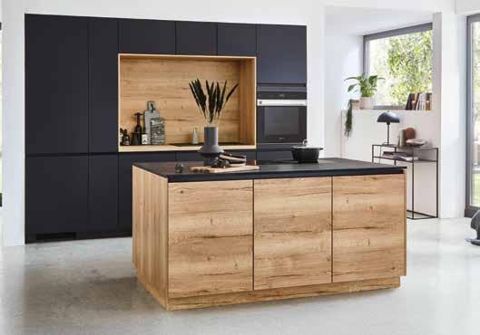 MONDO Inselküche, Front in Grafitschwarz ultramatt und Eiche Sierra Nachbildung, Korpus in Eiche, Arbeitsplatte in Venato Nero Nachbildung, inkl. Nischenverkleidung in Eiche Sierra Nachbildung, ca. 300 cm. 0197029278 INKLUSIVE PREMIERE Backofen (EEK**A) 235244, PREMIERE Kühlschrank (EEK**E) 361787, PREMIERE Geschirrspüler (EEK**E) 246804, Dunstabzug, Kochfeld, Spüle und Armatur gegen Mehrpreis.