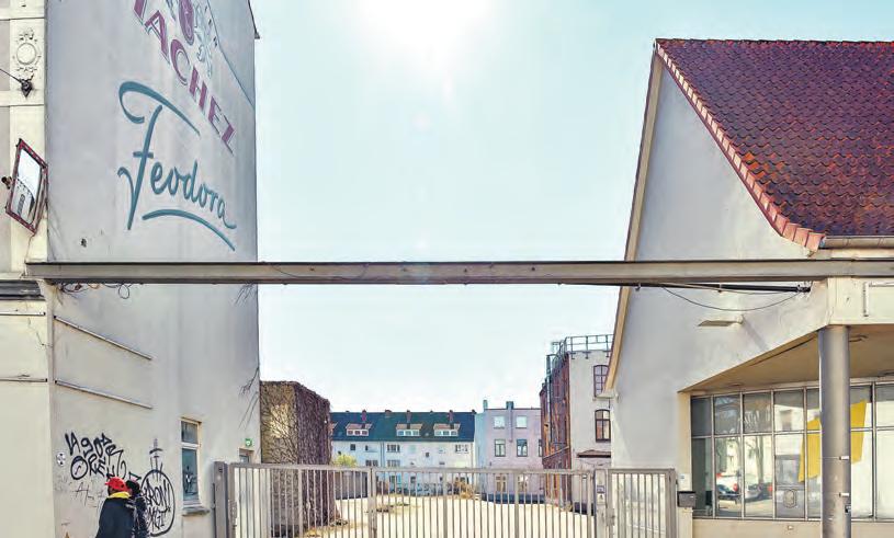 „Wir wollen möglichst viel graue Energie nutzen, deshalb bleiben die Gebäude entlang der Westerstraße erhalten“, erklärt Luis Hornung, Geschäftsführer von Denk x Stadt. Hinzu kommen drei denkmalgeschützte Gebäude: im Zentrum des Grundstücks, das Kontorhaus an der Westerstraße sowie ein Produktionsgebäude an der Großen Annenstraße. Auch das ehemalige Pförtnerhaus als Eingang in das künftige Quartier bleibt erhalten. „Der Schriftzug kommt wieder“, verspricht Hornung. Die jüngeren Gebäude, die weiterhin genutzt werden sollen, werden nach Plänen der neuen Eigentümer um zwei Geschosse aufgestockt. In fünf Bauabschnitten soll die Verwandlung des ehemaligen Industriestandortes zum Wohnund Arbeitsquartier mit Platz für Musik und Kultur sowie Bildungseinrichtungen ab dem kommenden Winter voranschreiten. Zunächst ist der Abriss einiger Gebäude geplant, es folgt der Umbau der übrigen frühestens ab der zweiten Hälfte 2026. Die Arbeiten für die Neubauten könnten dann ein Jahr später starten. Neben einer Kindertageseinrichtung ist auf viereinhalbtausend Quadratmetern