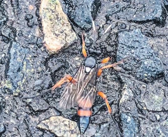 Diese Vierfleck-Höhlenschlupfwespe fand Josef Teupe auf einem Weg an der Hemelinger Marsch. Die Art wurde noch nie in Bremen nachgewiesen. Bei diesem Insekt handelt es sich um ein Weibchen, wie man an den weißen Fühler-Streifen erkennt. Foto: Teupe
