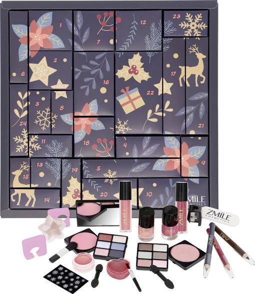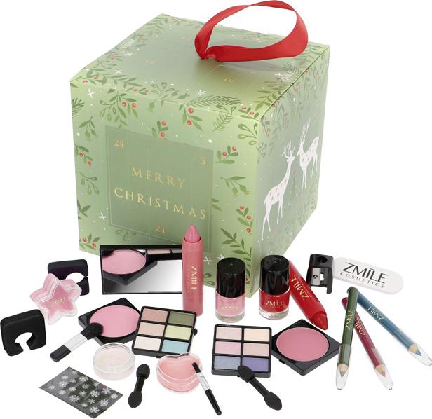 Bezaubernder Kinderkalender mit 24 kleinen Schminküberraschungen.