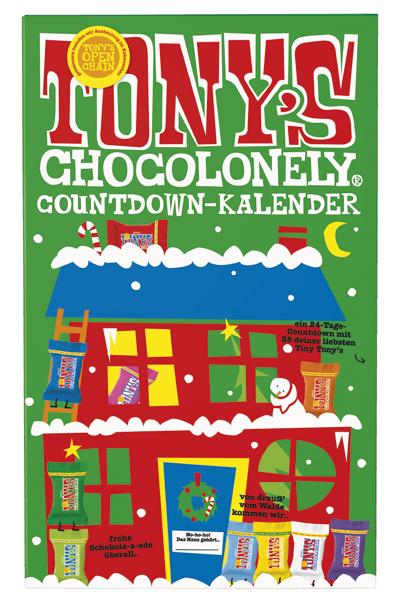 CountdownAdventskalender Geschmacksrichtungen von Fair Trade Milch, in weißer oder dunkler Schokolade. 225 g 1 kg = 66.62