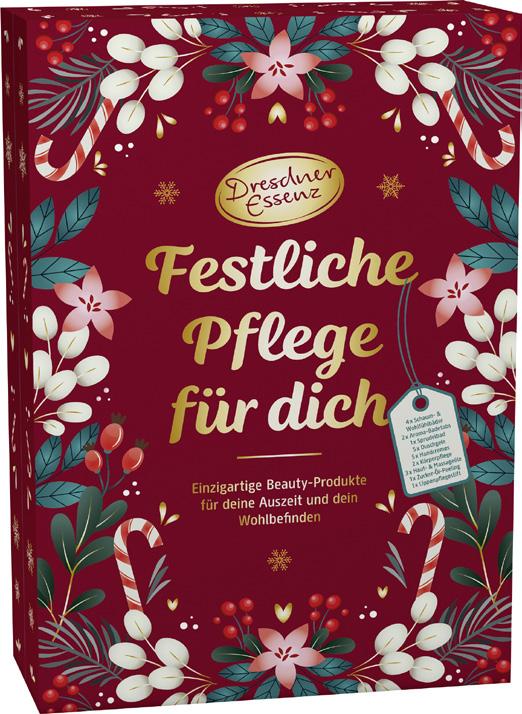 Adventskalender 24 Türchen mit jeweils einem exklusiven Dresdner Essenz Pflegeprodukt.