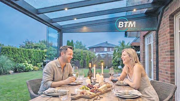 Wer sich inspirieren lassen möchte, findet in der großen BTM In- und Outdoor-Ausstellung alles auf einen Blick: Terrassendächer aus Holz und Aluminium, Kaltwintergärten, Lamellendächer, Terrassenfaltdächer, Dielen aus WPC und Holz. Auf Wunsch übernimmt BTM auch Pflaster- und Elektroarbeiten – ein Ansprechpartner für das gesamte Projekt.