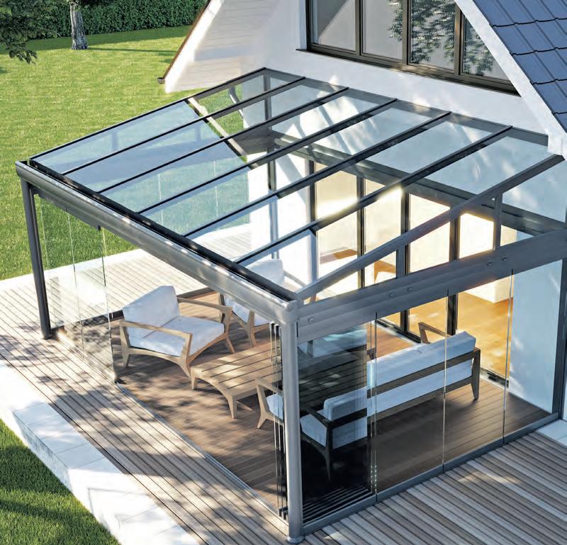 heitsglas auf den Dächern. Rund 60 Dachkonstruktionen und über 800 Quadratmeter Glas liegen permanent auf Lager – das bedeutet kurze Lieferzeiten, auch für Sondermaße.