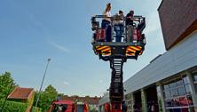 Katrin, die es sportlich mag, fragt nach, ob es nicht bei stürmischem Wetter ordentlich schwankt auf der Drehleiter 23/12. Doch für solche Fälle gibt es zum Glück konkrete Vorgaben. „Wir setzen die Leiter nur bis zu Windstärke 4 ein“, sagt Schröder.