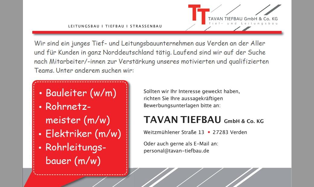 Oder auch gerne als E-Mail an: personal@tavan–tiefbau.de