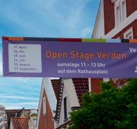 lerinnen und Künstler vieler Art und dem Laufpublikum in der City entwickelt. Am heutigen Samstag von 11 bis 13 Uhr stehen Auftritte von Noredline sowie Bäck auf dem Rathausplatz an. Musiker, Comedians, Schauspieler oder viele andere mit Interesse, sich einmal dort zu präsentieren, können sich per E-Mail unter info@openstageverden.de melden.