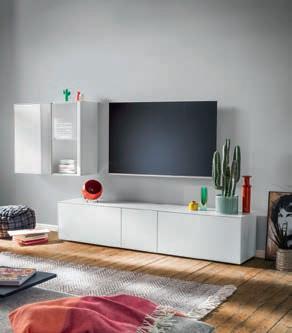 05 Wohnkombination RAUM. FREUNDE Henri, Korpus und Front Lack weiß matt, Stellfüße, bestehend aus: TV Board mit Türen und 2 Hängekorpi, jeweils mit Fachboden, Korpus auf Gehrung, Kabeldurchlass, BHT ca. 300x180x42 cm ab 2676.-