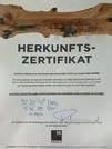 Das original Herkunfts-Zertifikat mit den exakten Geo-Daten als Nachweis für nachhaltige und ressourcenschonende Fertigung der Tischplatte.