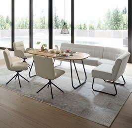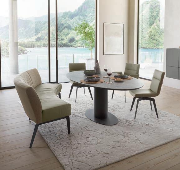 01 Sitzbank WK 735 bringt viel Komfort, und Modernität ins Esszimmer –gleich ob als geteilte Bank, sanft geschwungene Curved Bank oder als Variante mit Rundecke. Bezug in hochwertigem Leder oder anschmiegsamem Stoff, beide Materialien lassen sich auch miteinander kombinieren, 9 Gestellvarianten, 10 Armlehnvarianten, 6 Rückenausführungen und das pulverbeschichtete Metallgestell ist in vielen frischen Farben erhältlich. Preisbeispiel: Sitzbank WK 735, im Materialmix, BHT ca. 220x90x67 cm ab 2686.-