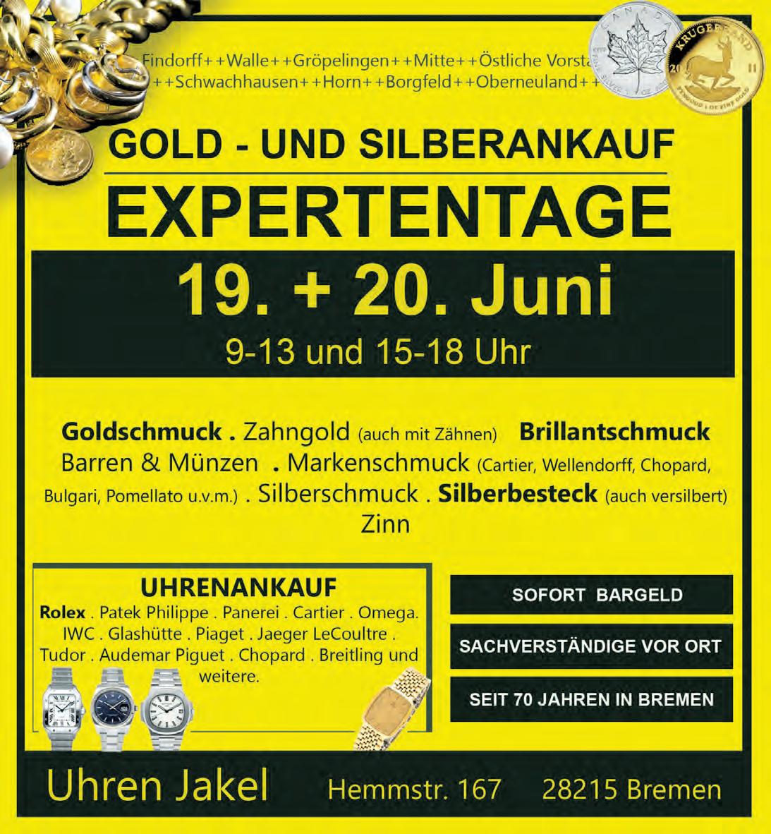 kompetente Bewertung sind beim Goldankauf sehr wichtig. Uns besuchen vermehrt Kunden auch aus benachbarten Stadtteilen, die aufgrund von Empfehlungen zu uns kommen,“ sagt das Team von Uhren Jakel. Vorsicht! Polizei und Medien warnen regelmäßig vor fliegenden Händlern, die leerstehende Ladengeschäfte kurzzeitig anmieten und den Ankauf von Gold, Uhren und Pelzen zu überhöhten Preisen bewerben. Kunden berichten von Abzocke und windigen Methoden. Der Ankauf und Hausbesuche solcher Händler dienen häufig zu Vorbereitungen für andere Straftaten, wie z.B. Diebstähle oder Einbrüche.