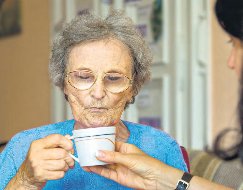 hörige und Betreuende ist, auf eine ausreichende Flüssigkeitszufuhr zu achten und diese mit geeigneten Maßnahmen zu unterstützen. „Das kann das Färben von Getränken mit Traubenoder Holundersaft sein, je nach Geschmackspräferen-