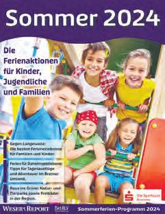 Lars Lenssen, Thorsten Runge, Marcus Schmidt Reise, Motor und Sonderthemen: Marinos Kaloglou Sport: Lars Lenssen Kultur: Bettina Meister Das BLV Regina Drieling, Nikolas Janßen, Antje Spitzner Büro Osterholz-Scharmbeck : Marius Roskamp Fotos: Klaus Werner Schlie Anzeigenleiter: Johannes Knees Kleinanzeigen: Tel. 690 55 400, Fax 690 55 500 Gestaltete Anzeigen: Tel. 690 55 102 info@weserreport.de Zurzeit gelten Anzeigenpreisliste Nr. 51 vom 1. Januar 2024 und unsere darin abgedruckten AGB. Falls Sie dieses Produkt nicht mehr erhalten möchten, bitten wir Sie, einen Werbeverbots-aufkleber mit dem Zusatzhinweis „Keine kostenlosen Zeitungen“ an Ihrem Briefkasten anzubringen. Weitere Informa-tionen finden Sie auf dem Verbraucherportal www.werbung-im-briefkasten.de Internet: www.weserreport.de Druck: DruckHaus Delmenhorst GmbH Verbreitete Auflage: 268.881 Exemplare mit DELME REPORT, HAMME REPORT und WÜMME REPORT 353.160 Exemplare