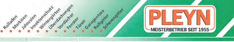 mail@holzhandlung-taube.de www.Holzhandlung-taube.de Erwin Pleyn GmbH · Buntentorsteinweg 558 · 28201 Bremen Tel. 0421-847510 · www.pleyn.de • Rollladen • Markisen • Jalousien • Insektenschutz • Vordächer • Fenster • Türen • Garagentore n Glasätzerei n Schiebetüren n Duschen