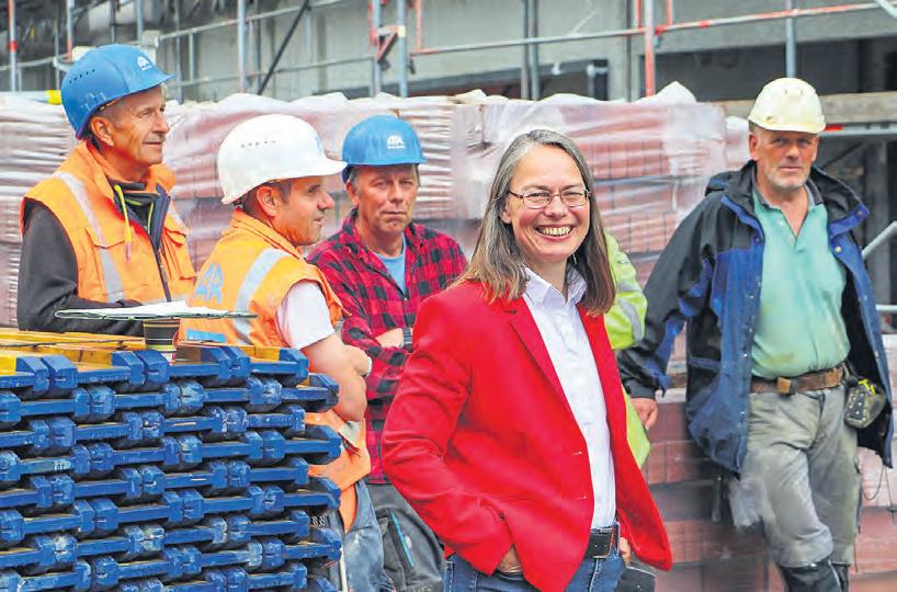 Kristina Vogt, Bremer Senatorin für Wirtschaft, Häfen und Transformation, und Falk Wagner, Sprecher für Bau, Wohnen und Stadtentwicklung der SPD-Bürgerschaftsfraktion, an einem Podiumsgespräch teil. Anschließend konnten die Nachbarschaft und weitere Besucher das Gebäude besichtigen.