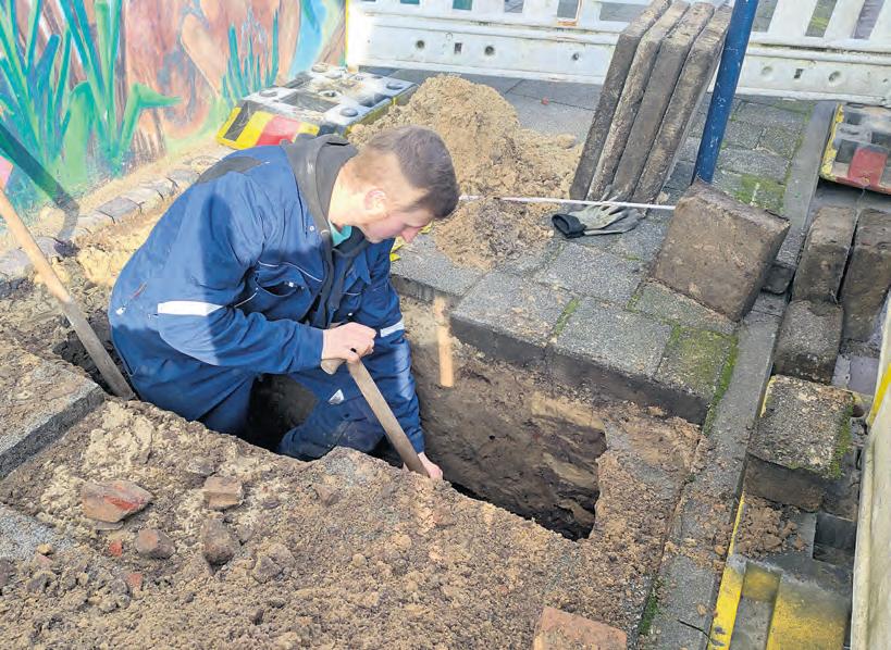 Erste Suchschachtung für ein kaltes Nahwärmenetz an der Humboldtstraße durchgeführt