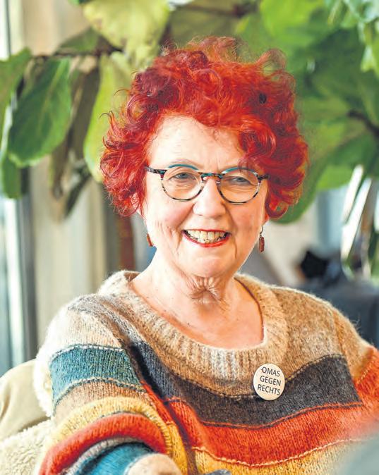 Weil mir schon immer die soziale Gerechtigkeit in der Gesellschaft wichtig war. Das ist schon seit dem Studium so, seitdem setze ich mich für Demokratie ein. Kurz vor meiner Rente habe ich dann einen Artikel über die Omas gegen Rechts gelesen und hab gedacht: Da will ich mich engagieren. Denn es ist nun mal so, w ir würden am meisten verlieren, wenn Rechtsextreme wieder an die Macht kommen und das Frauenbild der 40er-Jahre wieder etablieren. Meine Enkeltochter spielt da auch eine g roße Rolle, die soll mich irgendwann nicht fragen „Oma, warum hast du nichts gemacht?“
