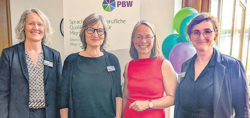 Bei der Eröffnungsfeier (v.l.): Angela Weber (Leitung private Fachschule für Sozialpädagogik und Heilerziehungspflege), Frauke Felix (PBW-Vorständin), Senatorin Sascha Karolin Aulepp und Katrin Dicken (Leitung Berufsfachschule für Sozialpädagogische Assistenz und Kinderpflege). Foto: pv