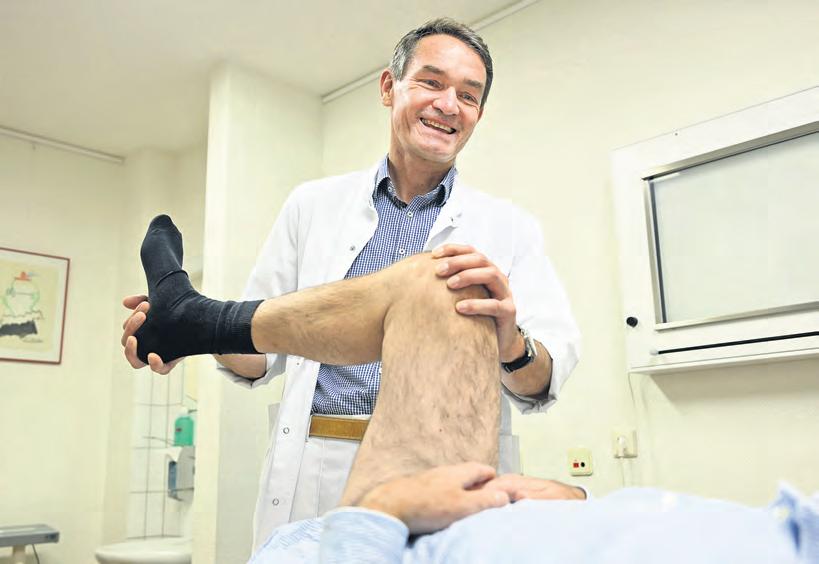 bevorzugen. Viele wählen die beidseitige Variante mit nur einer Narkose. Da für sie eine Operation mental weniger belastend ist, als zwei getrennte Operationen. Beidseitige Hüft- oder KnieOperationen dauern etwa doppelt so lang wie die Implantation nur einer Seite – also rund zwei Stunden für die Hüften und etwa zweieinhalb Stunden für beide Knie. Durch unsere Erfahrung und Routine in der Klinik für Orthopädie und Unfallchirurgie, bieten wir nicht nur nachweislich Maximalstandards in der Behandlungsqualität, sondern sind dabei auch noch schnell – das reduziert die Narkosedauer für die Patientinnen und Patien-
