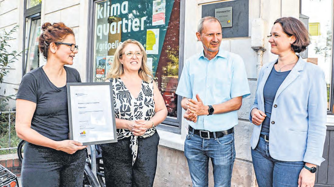 Bremer Umweltpreis: Die Klimakooperation Fischereihafen, vertreten durch Frosta, der Lenderoth Service und der Stadt.Energie.Speicher sind in der Endrunde um 10.000 Euro. Umweltsenatorin Kathrin Moosdorf: „Wir haben hier Leuchtturmprojekte.“ Die Gewinner werden am 19. September geehrt. mas