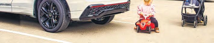 Ein Kleinkind auf einem Bobbycar hinter dem Auto – ein Szenario, das nicht von allen Fahrzeugen erkannt wird. Die Ergebnisse aus dem ADAC Bremsassistenten-Test bescheinigen dem VW Tiguan (Foto) sowie BMW, Ford und Volvo ein „sehr gut“ .