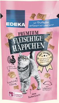 EDEKA Fleischige Häppchen mit Truthahn, verfeinert mit Leberwurst 1kg = 40g Beutel