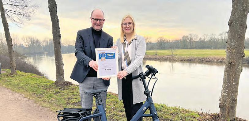 LANDKREIS Der WeserRadweg gilt als meist befahrener und beliebtester Radfernweg in Deutschland. Eine abwechslungsreiche Strecke durch unterschiedliche Landschaften mit idyllischen Fachwerkstädtchen sowie Burgen und Schlössern machen den Radweg zu einem beliebten Radreiseziel. Welche Touren in ihrem Magazin die Favoriten waren, ermittelt das Fachmagazin „Bike&Travel“ einmal im Jahr mit dem „Bike&Travel“Award. Alle Radreisegeschichten, die in den sieben Ausgaben des Magazins im Jahr 2024 vorgestellt wurden, standen in drei Kategorien zur Wahl. Der Weser-Radweg konnte in der Kategorie „Die beliebtesten Touren in Deutschland“ glänzen und erreichte Platz 2 hinter dem Naturpark Altmühltal und vor der 100-SchlösserRoute aus dem Münsterland. Egal, ob man sich nur für einen