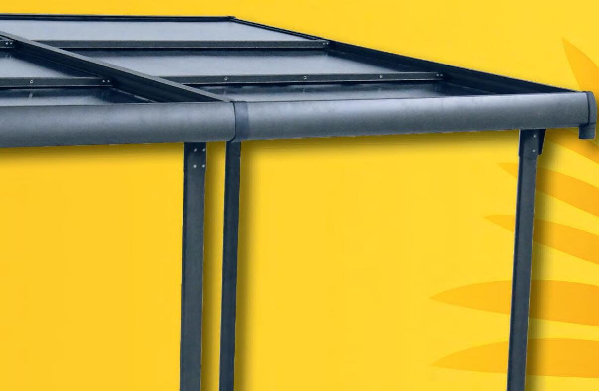 Sunfun Anstellpavillon 'Sera Cabrio' B 400 x T 300 cm, anthrazit, bis zu 2/3 des Polycarbonatdaches können geöffnet werden, robustes, wartungsarmes und witterungsbeständiges Gestell aus Aluminium, integrierte Regenrinne fängt Regenwasser auf, UV-Schutz 50+ bei geschlossenem Dach