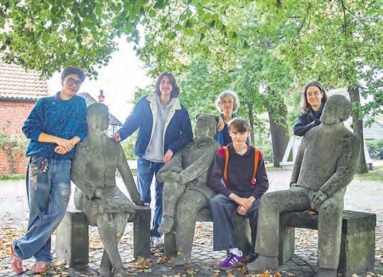 Luca Pengelly, Nick Awad und Mateo Lüer Gemeo (vorne) sind alle 17 Jahre alt und alle engagiert. Regine Moll von der Freiwilligenagentur und Martina Michelsen (Mitte) von der VHS freuen sich über ihre Beteiligung an der Langen Nacht der Demokratie. Foto: Utke