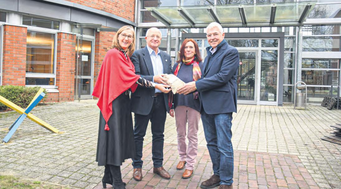 Kerstin Purnhagen, Tönjes Itgen, Brigitte Neuner-Krämer und Detlef Risch bei der Übergabe des Reinerlöses des letzten Weinfests. Foto: Utke