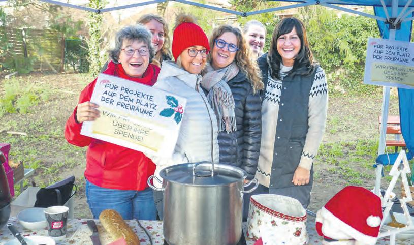 und der DRK-Kleiderkammer Menschen ein, die von ihnen unterstützt werden. Passanten, die hier zufällig vorbeikamen und sich interessiert umsahen, genossen ebenfalls die Einladung zu heißer Suppe und ebenso heißen Getränken. Weihnachtliche Atmosphäre voller Wärme, Gemeinschaft und Freude vermittelte die sogenannte Arbeitsgemeinschaft Freiräume den Menschen. Die Organisatoren der Vorweihnachtsaktion hatten köstliche Kürbis-, Linsen- und Erbsensuppe sowie Punsch vorbereitet. Für Sitzgarnituren und Tische hatte Ulrike Schrage