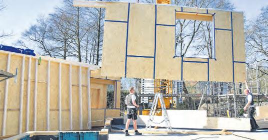Umweltfreundlich und zeitsparender Aufbau, nur leider unhandlich: Aus Modulen wie diesem setzen Handwerker die Seitenwände der Kita zusammen. Foto: Utke