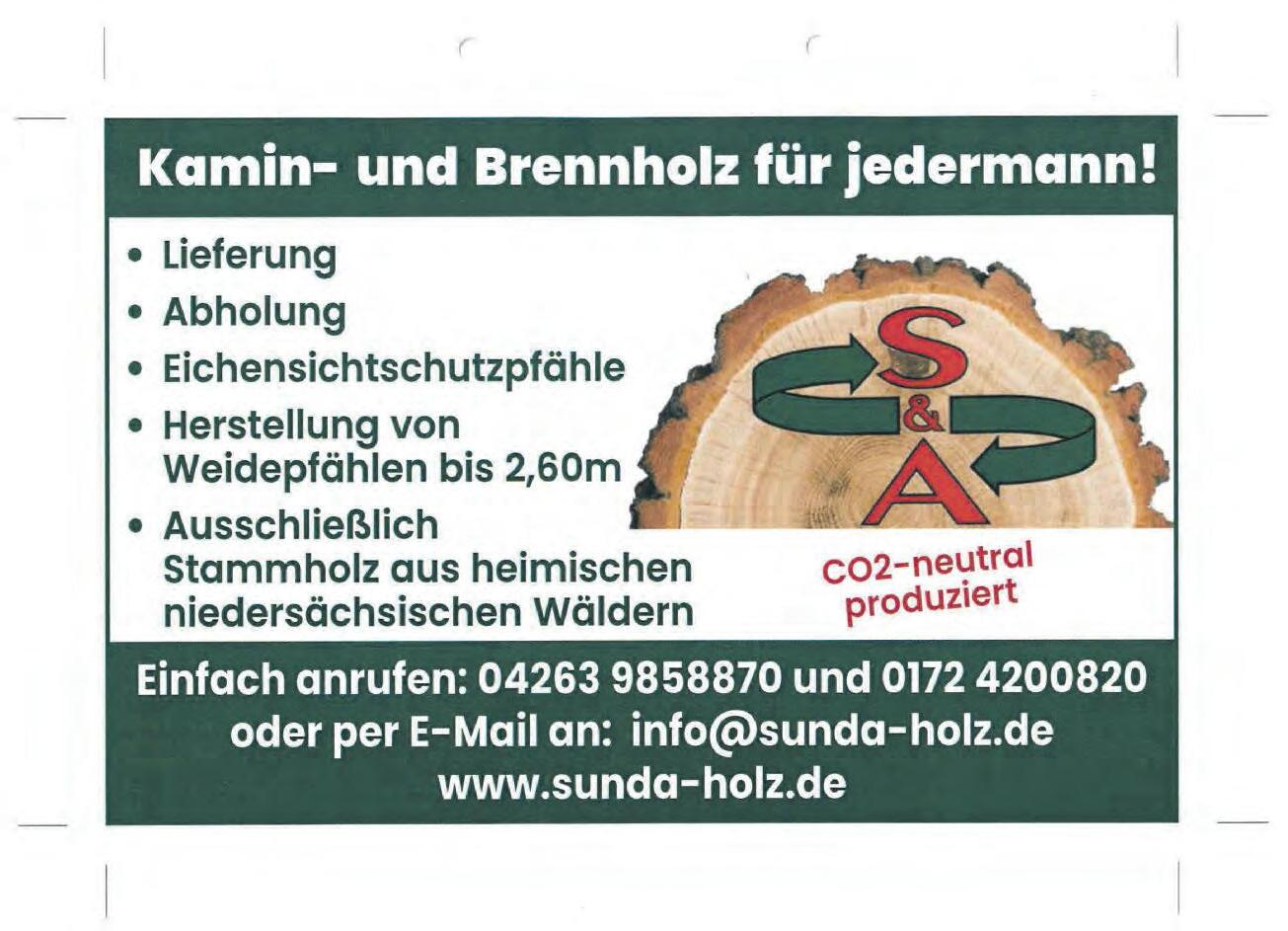 Anzeigen: Tel. (0 47 91) 9 65 69 00, Fax 9 65 69 10 Zurzeit gelten Anzeigenpreisliste Nr. 52 vom 01. Januar 2025 und unsere darin abgedruckten AGB. Falls