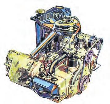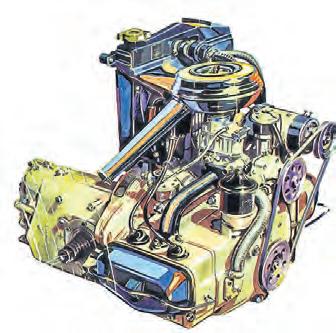 Deutlich erkennt man den zwar breiten, aber extrem kurz bauenden Serienmotor der Arabella. Links befindet sich das 4-GangGetriebe. Der Kühler steht aufgrund des geringen Platzes hinter dem Motor.