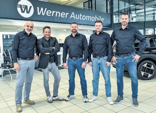 Das Team vom Bremer Kia Cargo Händler Werner Automobile freut sich, jetzt das neue elektrische Kia Transporter-Modell PV5 vorzustellen: PV5 Cargo Experte Christian Sittner mit Lars Fröhlke (Centerleiter) sowie Matthias Sieber, Jona Feltes und Daniel Riechers (von links).