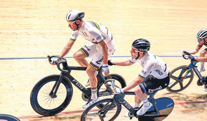 tise im Duo zuständig sei, will Marvulli für Stimmung in der Halle sorgen, erklärt der Schweizer. Dies sei auch ein wichtiger Teil der Sixdays, betont er. Einen besonderen Moment verbindet er deshalb nicht nur mit dem Wettkampf auf der Bahn, sondern auch mit dem, was rundherum geboten wird: „Als junger Fahrer stand ich ständig unter Strom und war glücklich über eine kurze Pause. Dann standen auf einmal Klaus und Klaus auf der Bühne und ich war Fan“, schwelgt Marvulli in Erinnerung. Das bekannte Schlager-Duo wird auch in diesem Jahr nicht fehlen und die Halle mit ihren gewohnten Hits unterhalten. Trotzdem gibt es auch Veränderungen im Rahmenprogramm, berichtet Roggow. Die Halle 4