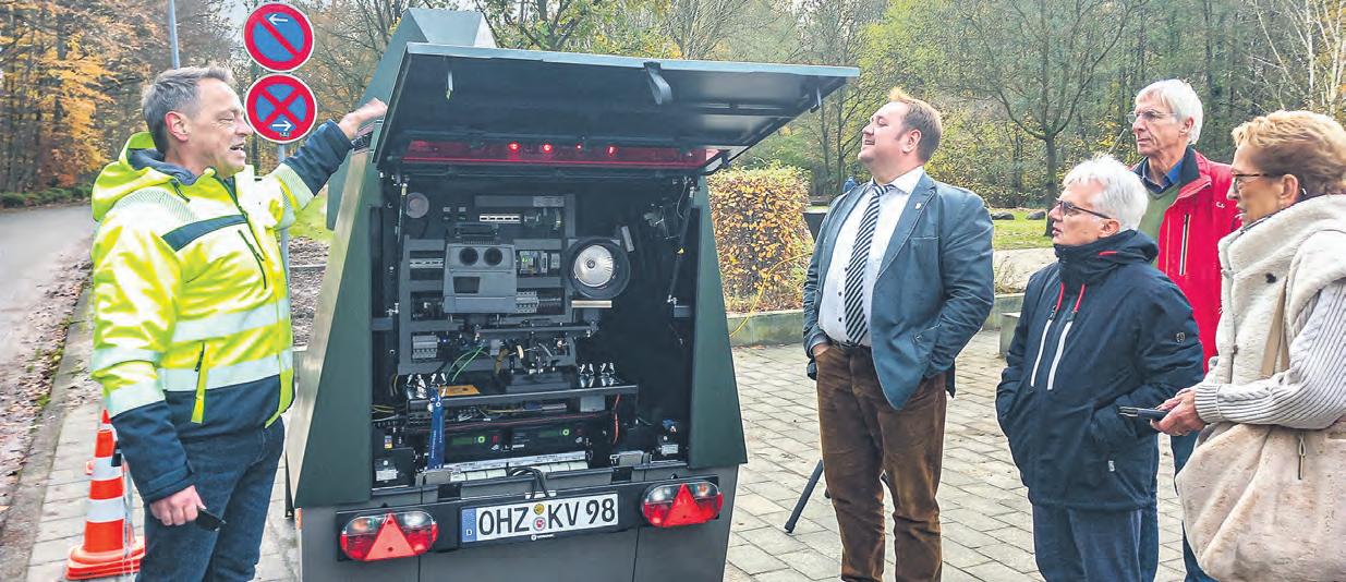 der Auf- und Abbau sowie regelmäßige Kontrollen vor Ort. Um ein solches Gerät handelt es sich bei der neuen Anschaffung des Landkreises. Ein weiterer Vorteil des Geräts: Der Anhänger bemerkt durch Sensoren, wenn sich jemand nähert. Sollte eine Person an den Blitzer herantreten, wird eine RundumVideoaufzeichnung aktiviert. Das Video wird direkt ins Internet übertragen und für 48 Stunden in der Cloud gespeichert. Dies soll dafür Sorge tragen, dass der Apparat nicht beschädigt wird. Bei der Vorstellung berichtete die Verwaltung von einem Fall in einem nahe gelegenen Landkreis, wo ein Blitzeranhänger gezielt gesprengt wurde. Doch auch vor Verunstaltungen soll das System schützen.